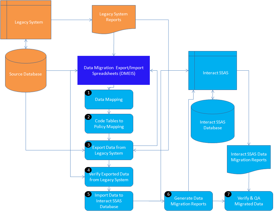 From its inception, Interact SSAS and other Interact Applications were developed to have built-in Data Conversion/Migration tools as we recognize that Interact Applications are deployed in existing organizations with legacy systems and their associated data. For this we use Interact’s Data Conversion/Migration Tools Data Migration Export/Import Spreadsheets (DMEIS), where data from the source Database is exported to DMEIS, then the DMEIS are imported to Interact SSAS Database.  During the Data Import Process Interact DM Tools validate and audit the data to ensure that the data to be Migrated/Imported to Interact SSAS Database is: